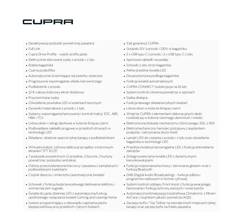 – CUPRA Connect Plus (subskrypcja na 3 lata)
