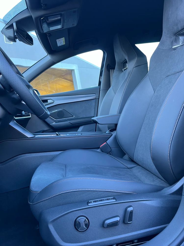 – Kubełkowe fotele przednie, tapicerka Dinamica® ze skórą ekologiczną z przeszyciem w kolorze miedzi