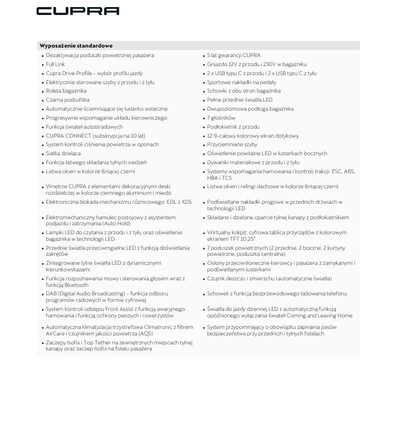 – CUPRA Connect Plus (subskrypcja na 3 lata)